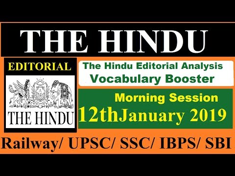 12th January 2019 The Hindu Editorial Analysis Vocab -RRB JE/RPF SI/Con...